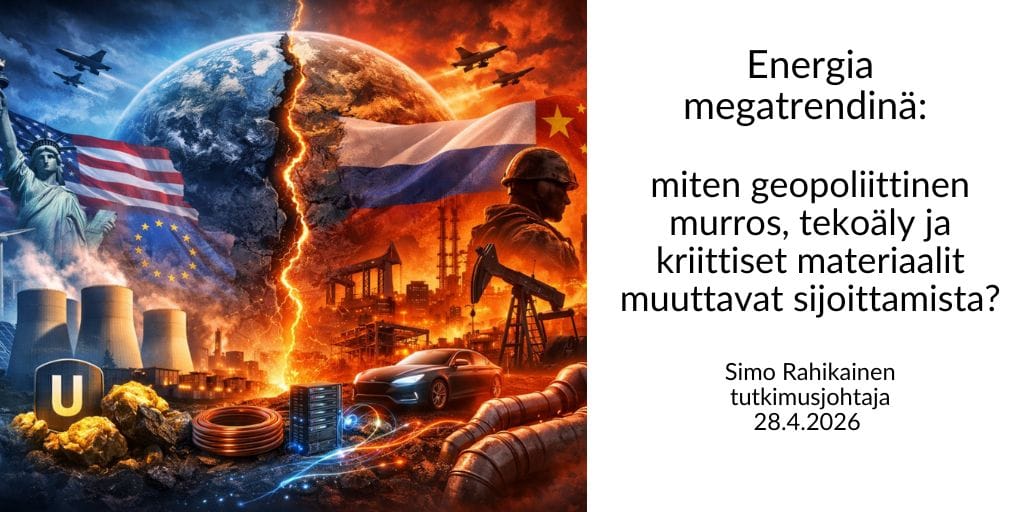 Energia megatrendinä – miten geopoliittinen murros, tekoäly ja kriittiset materiaalit muuttavat sijoittamista?