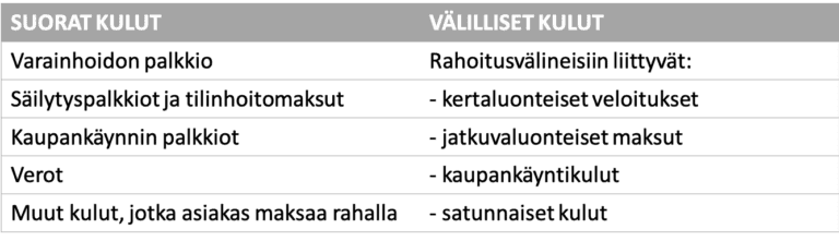 MiFID II:n määräysten mukaan sijoitustoiminnan kulut jaetaan kahteen ryhmään: