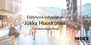 Yhtiömme perustajajäsen ja varatoimitusjohtajana työskentelevä Jukka Huuskonen johtaa Indexin sijoitustoimintaa sekä sijoitustoimikuntaa sekä vastaa kaupankäynnistä ja täyden valtakirjan salkkujen hoidosta....